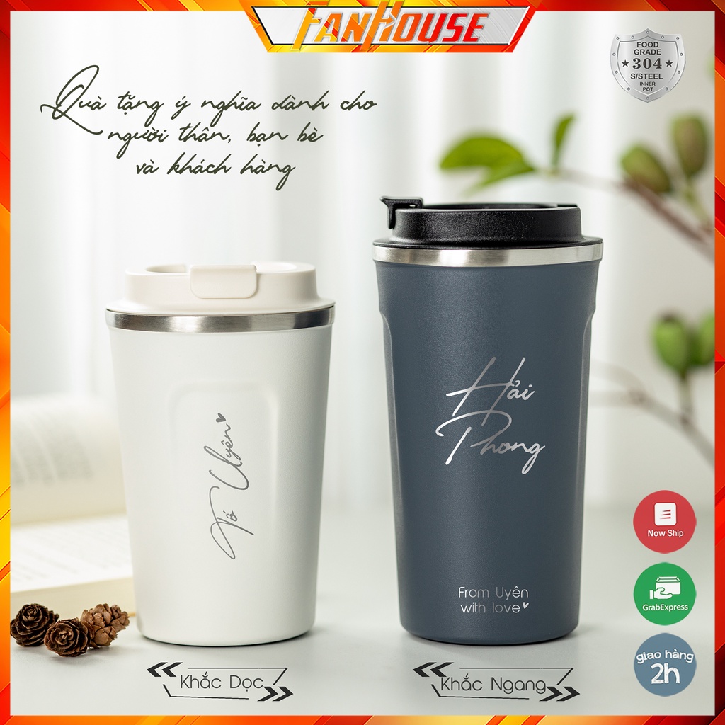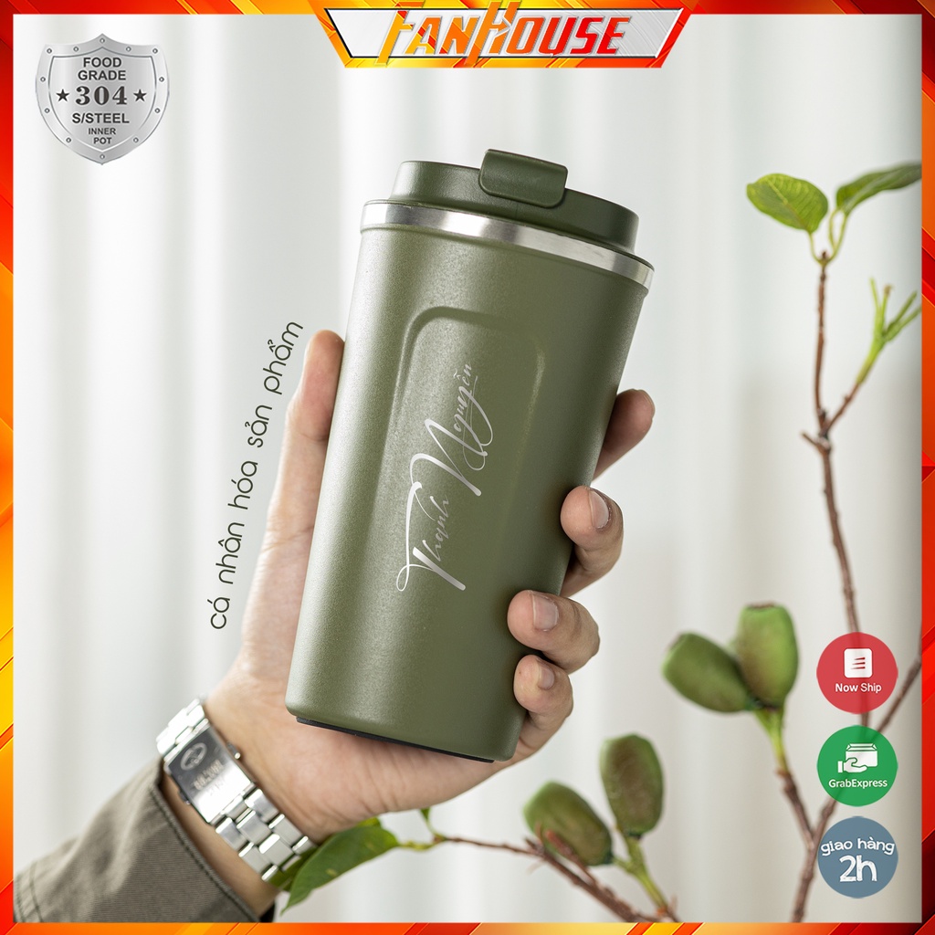 Bán chạy: Cốc giữ nhiệt 510ml Fan House ly coffee holic inox 304, bình nước giữ nhiệt 12h khắc tên theo yêu cầu tặng que cọ