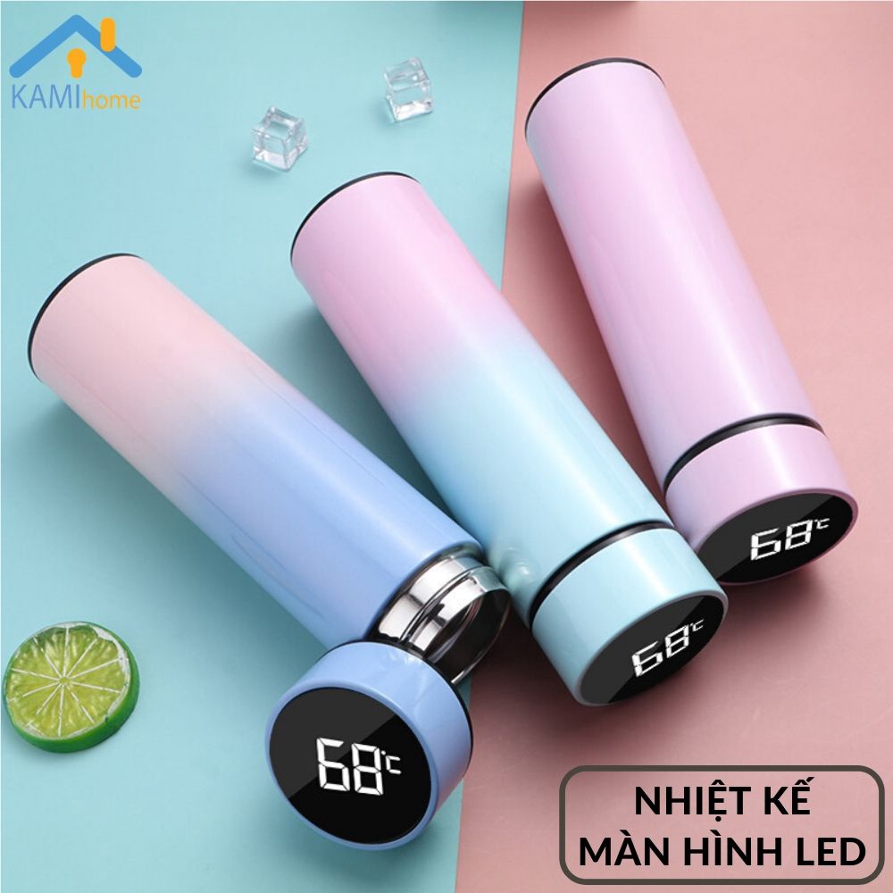 Bình nước giữ nhiệt hiển thị nhiệt độ cảm ứng 500ml chất liệu inox 3 lớp ly cốc cao cấp mã 22014 free ship