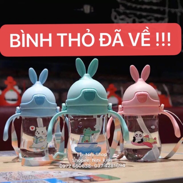 Bình Nước Cho Bé Tay Cầm Kèm Quai Đeo, bình tập uống 280ml-380ml free ship