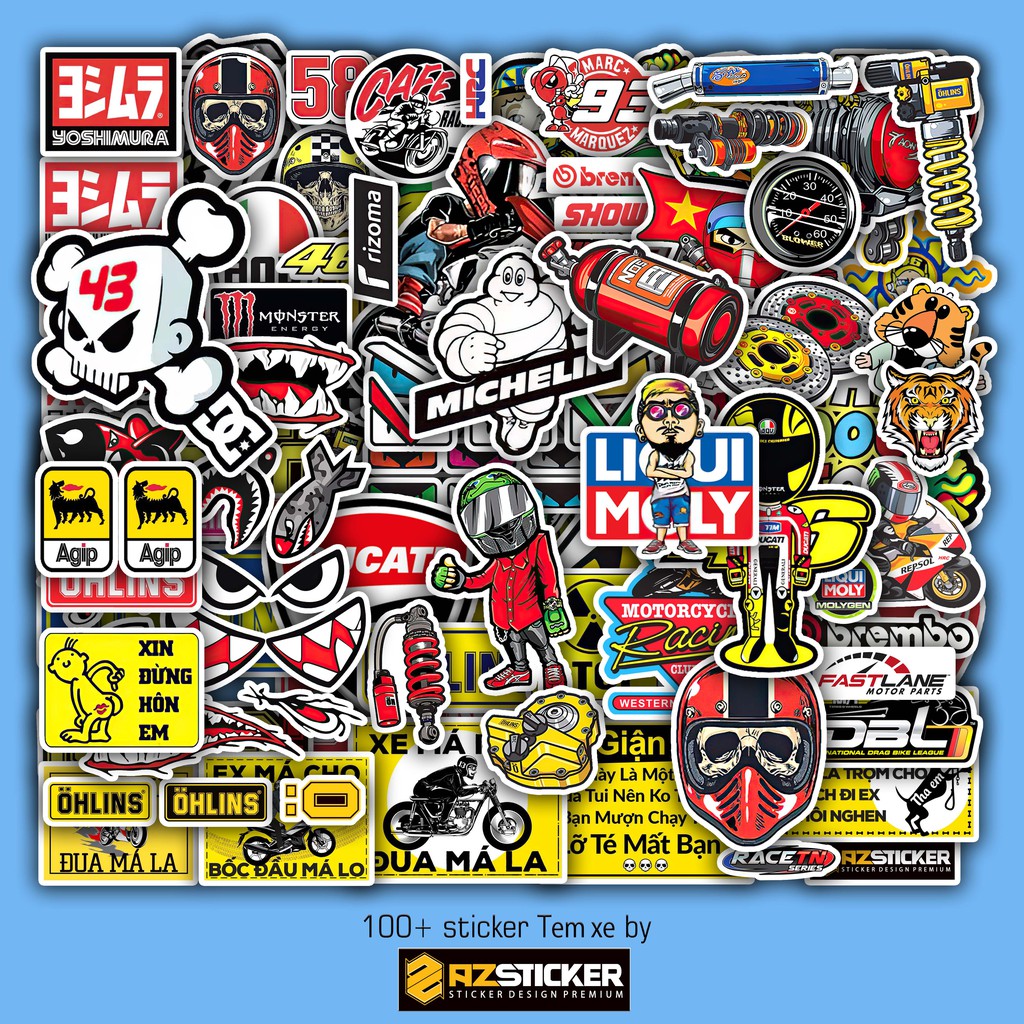 Freeship- [Set 100+] Sticker Tem Xe Chế | Dán Nón Bảo Hiêm, Điện Thoại, Laptop, Bình Nước...Chống Nước, Chống Bay Màu mua tại đây