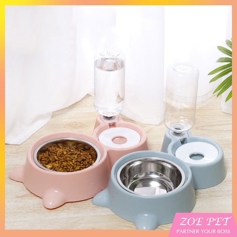 [HCM] Bát ăn đôi hình tai mèo lõi inox kèm bình nước tự động cho chó mèo