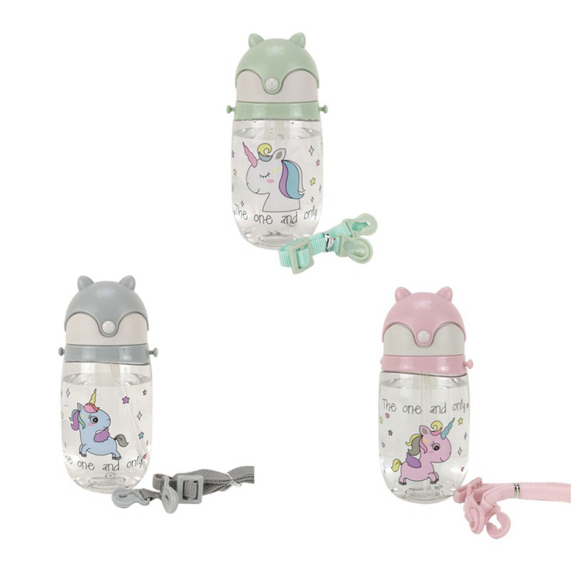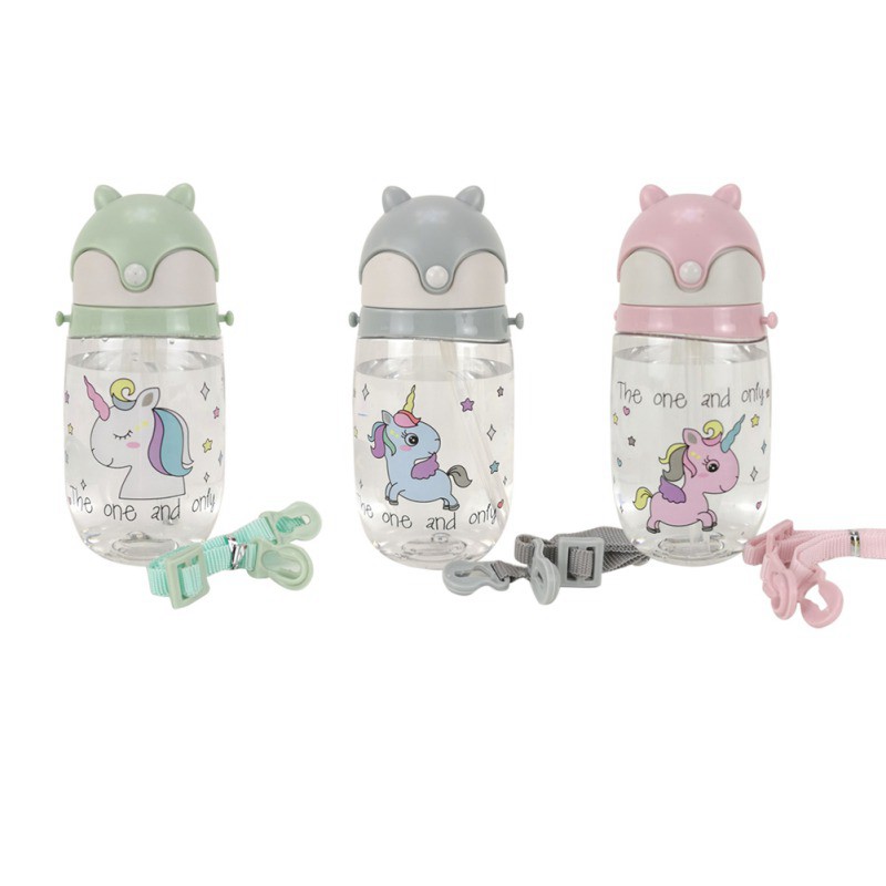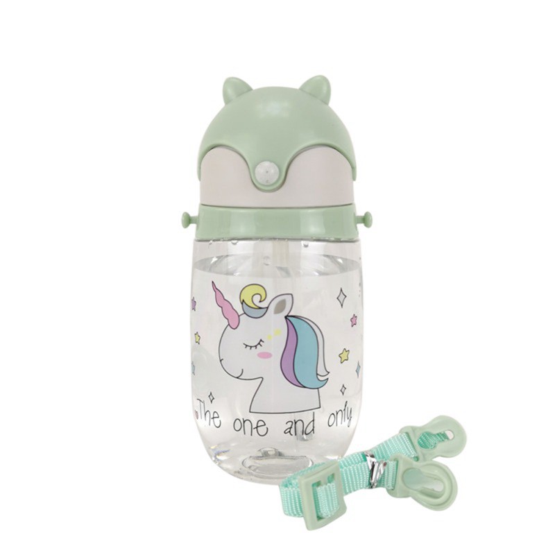 Bình nước in hình động vật hoạt hình có dây đeo vai cho bé free ship