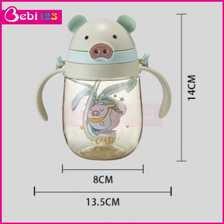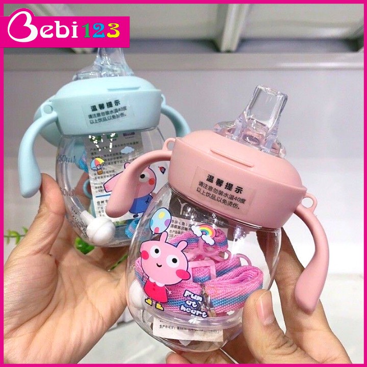 Bình nước cho bé đi học có ống hút chống sặc dây đeo giá rẻ có tay cầm cute cao cấp BN35