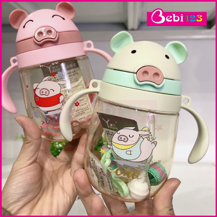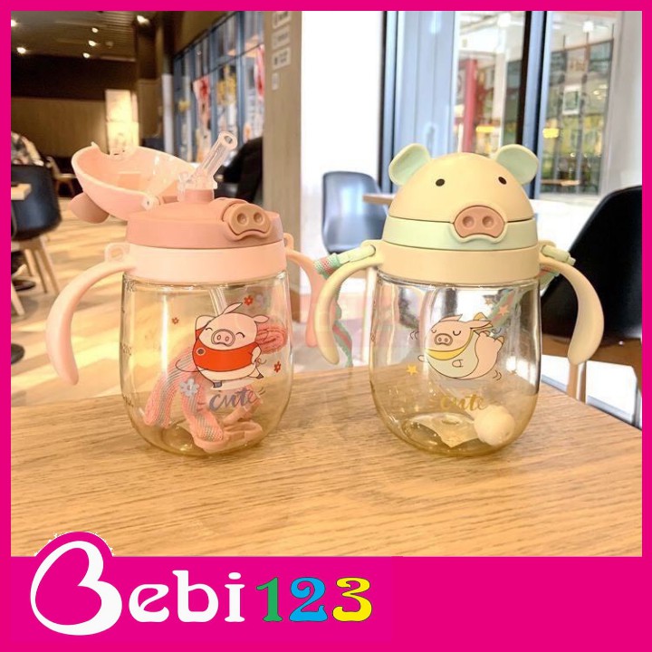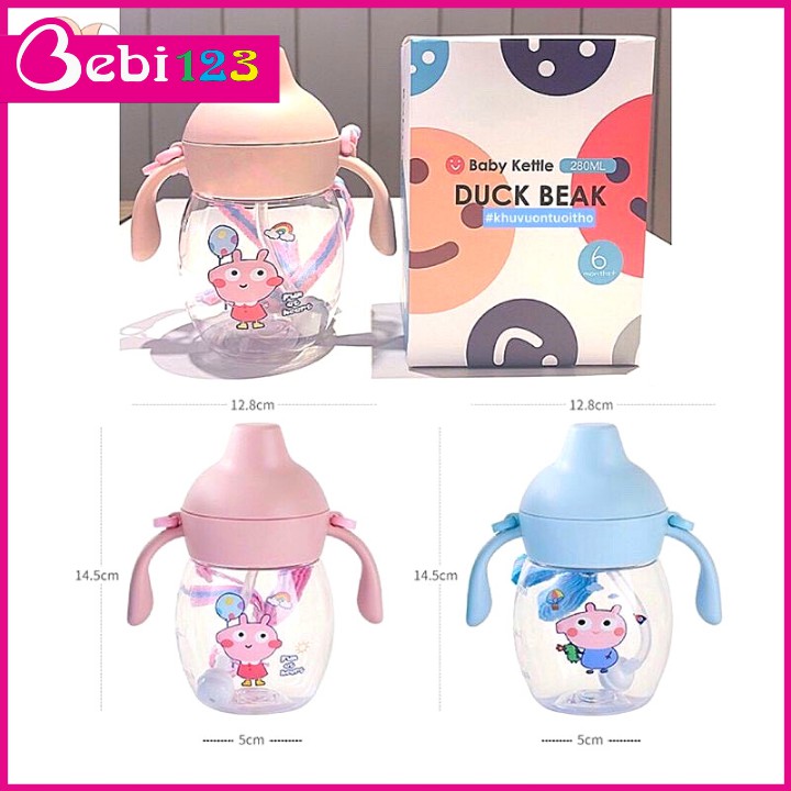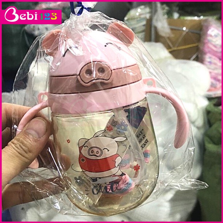 Bình Nước Tay Cầm Có Dây Đeo Hình Vịt Con và Hình Heo Con Đáng Yêu Cho Bé free ship