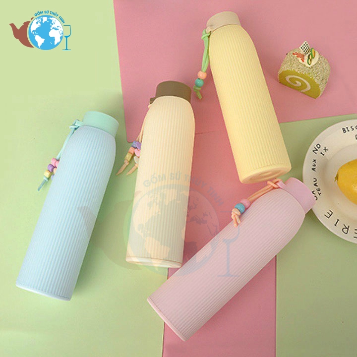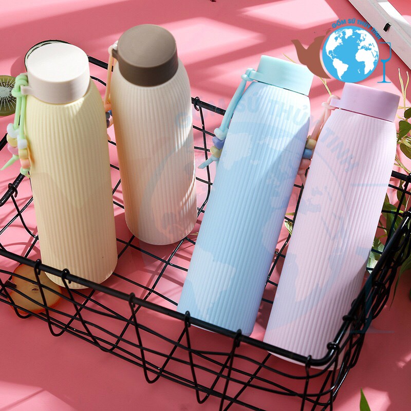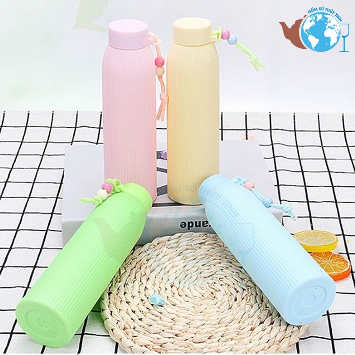 [Mã LIFEHLSALE2 giảm 10% đơn 0Đ] BGN01 Bình nước thủy tinh giữ nhiệt 420ml vỏ bọc free ship