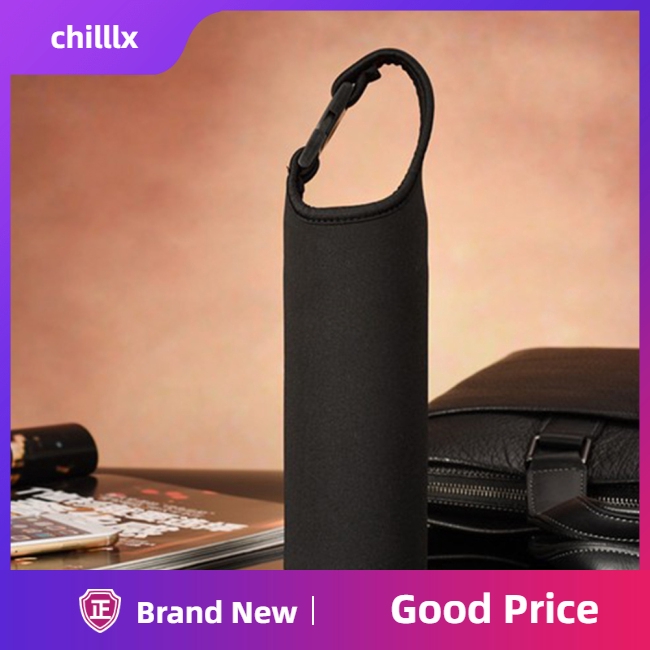 Túi Đựng Bình Nước 500ml Giữ Nhiệt Chống Nước Có Quai Xách Và Khóa Màu Đen Bằng Vải Neoprene free ship